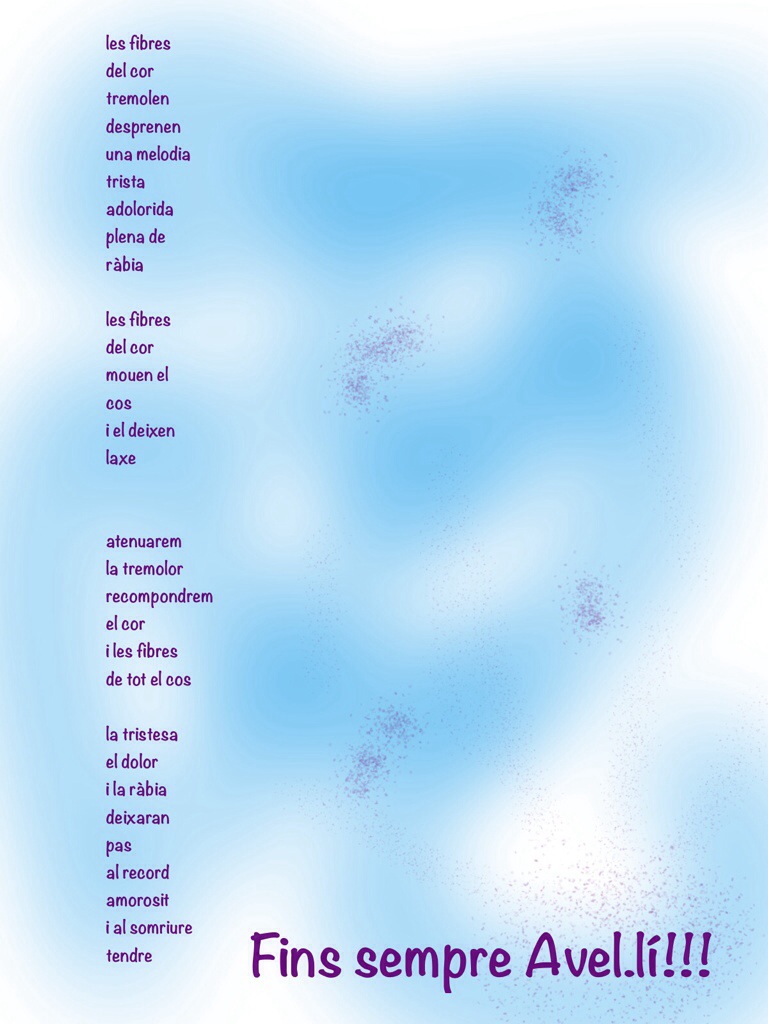 Per primer cop a Mots Muts Nats, hi haurà dos poemes en aquest post. Tots dos han estat a l’acte de comiat de l’Avel·lí d’aquest 21 de desembre. El primer el diu a ell -parcialment perquè com deia és impossible expressar tota la seva humanitat i personalitat en un poema. El segon ens diu a nosaltres, algunes emocions que ens ha deixat la seva pèrdua.